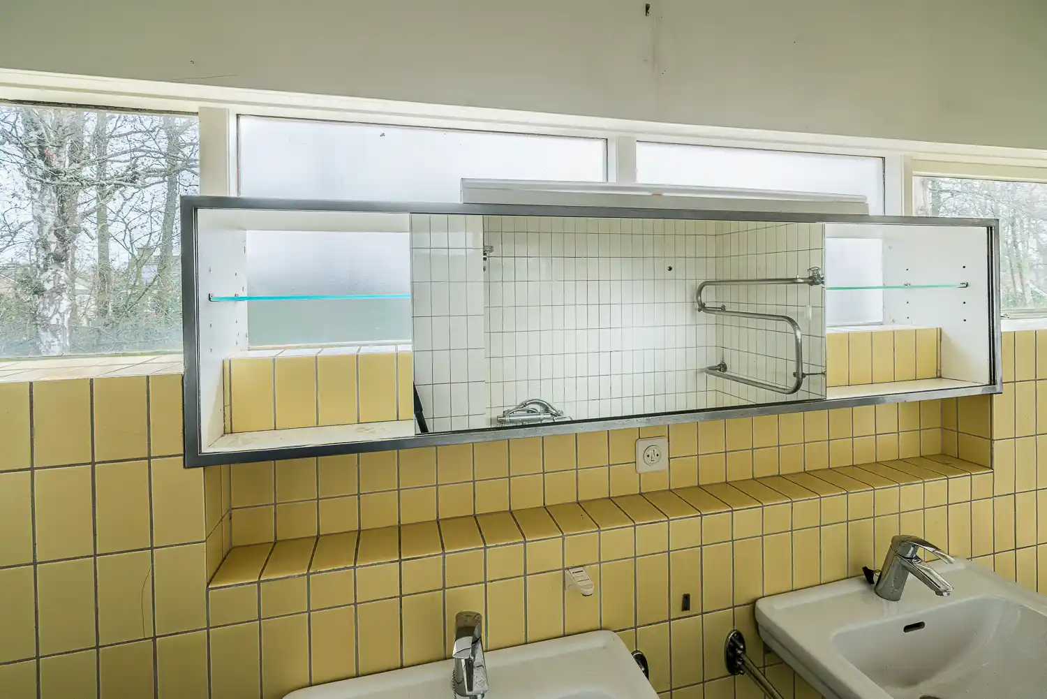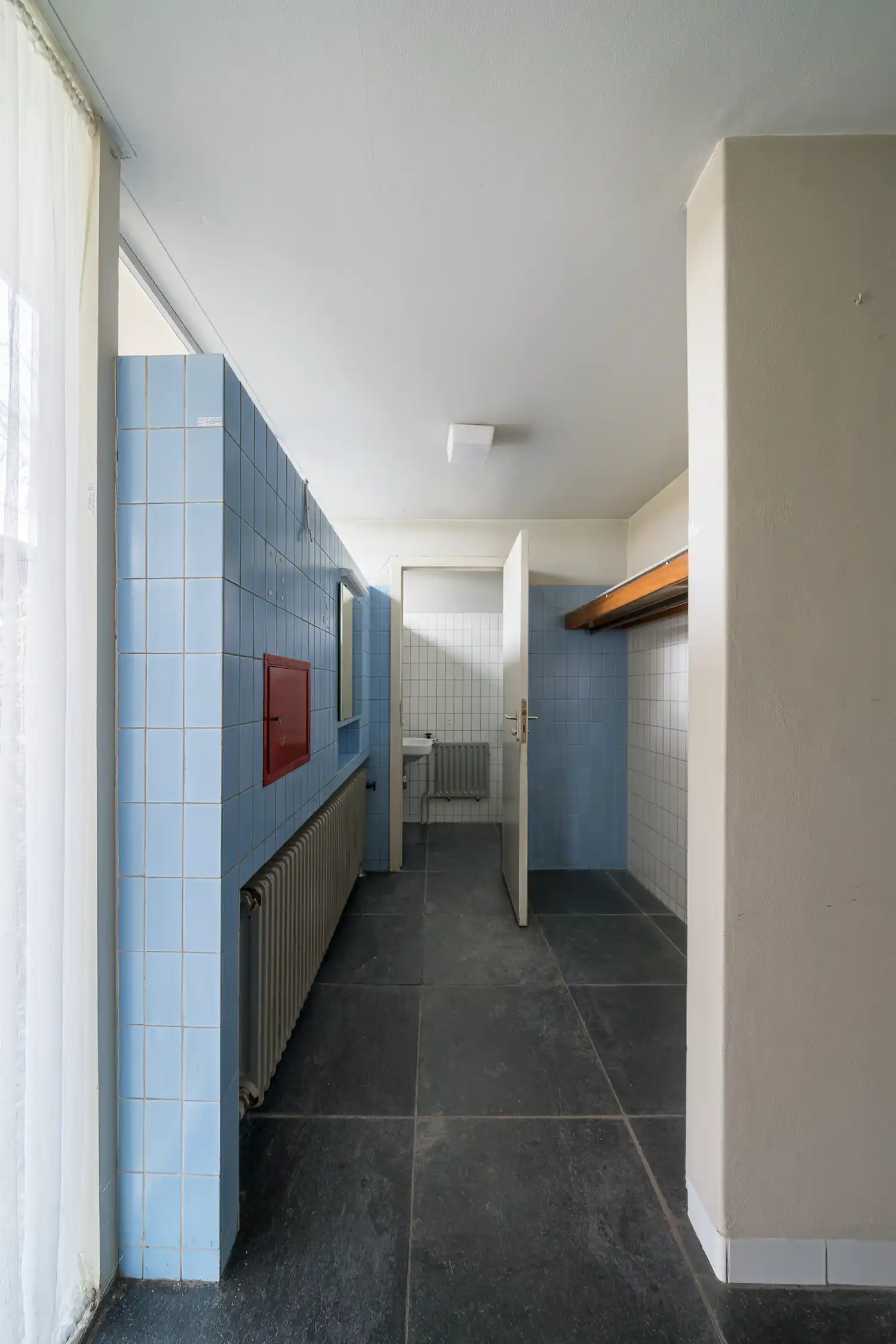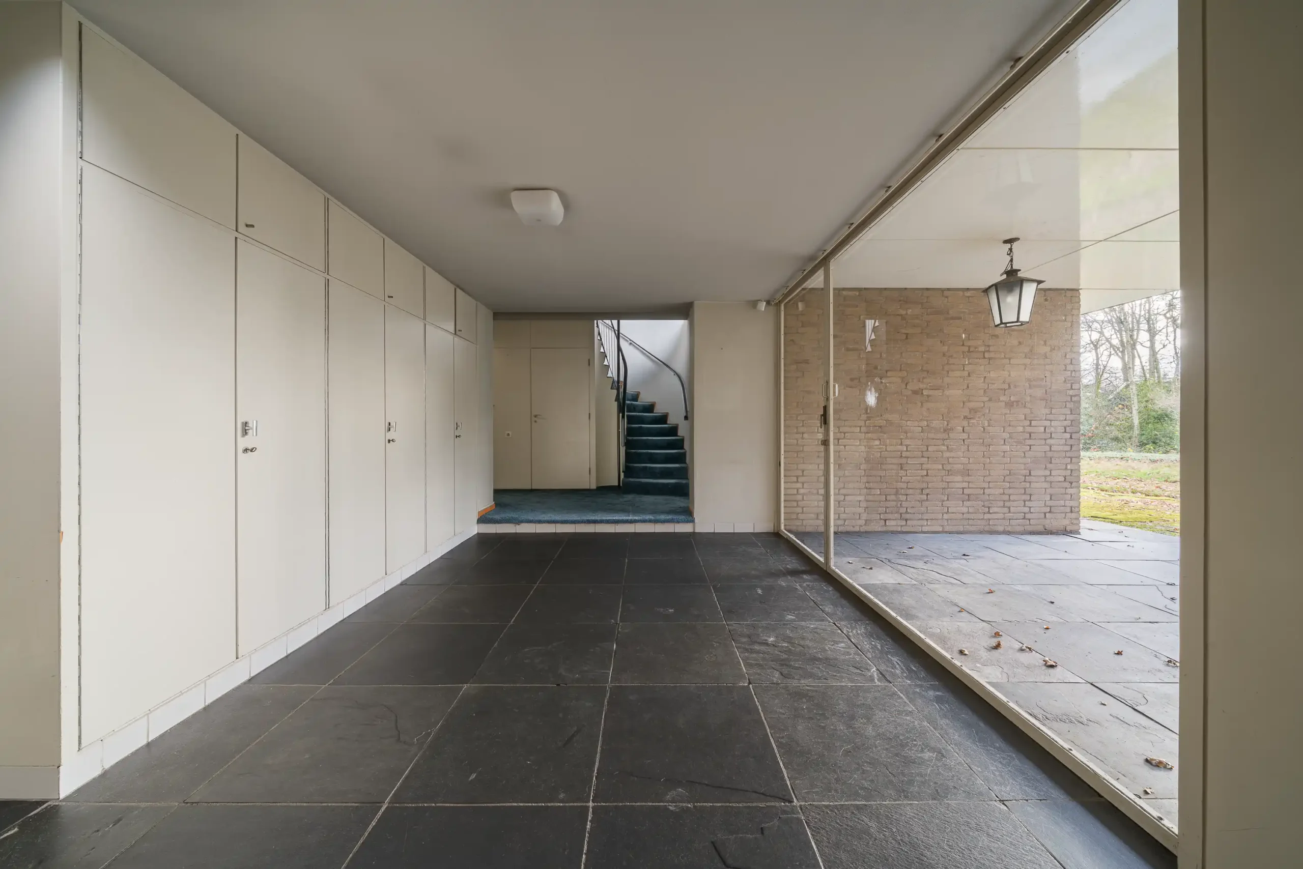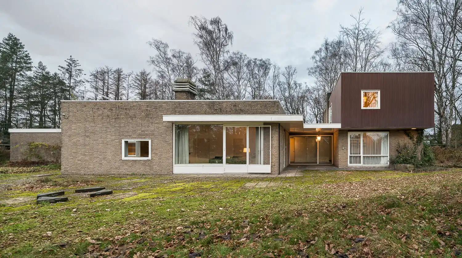 We zitten bij de openhaard in de grote leefruimte met een kop koffie nadat we een ronde door het huis hebben gelopen. We hebben alle kamers bekeken van de voormalige bewoners, Henk en Beryl van Gelderen en hun vijf kinderen. Jessica vertelt over hoe zij het huis bewoonden. ‘De kinderen vertelden dat ze vroeger graag speelden in de brede gang. Ze hielden toneelvoorstellingen op de verhoging bij de trap of gingen skeeleren op de leistenen tegels. Er was ook een inwonende ‘nanny’ en een tuinman die 22 jaar voor de familie heeft gewerkt. Hij vertelde dat hij nog nooit in de woonkamer was geweest!’