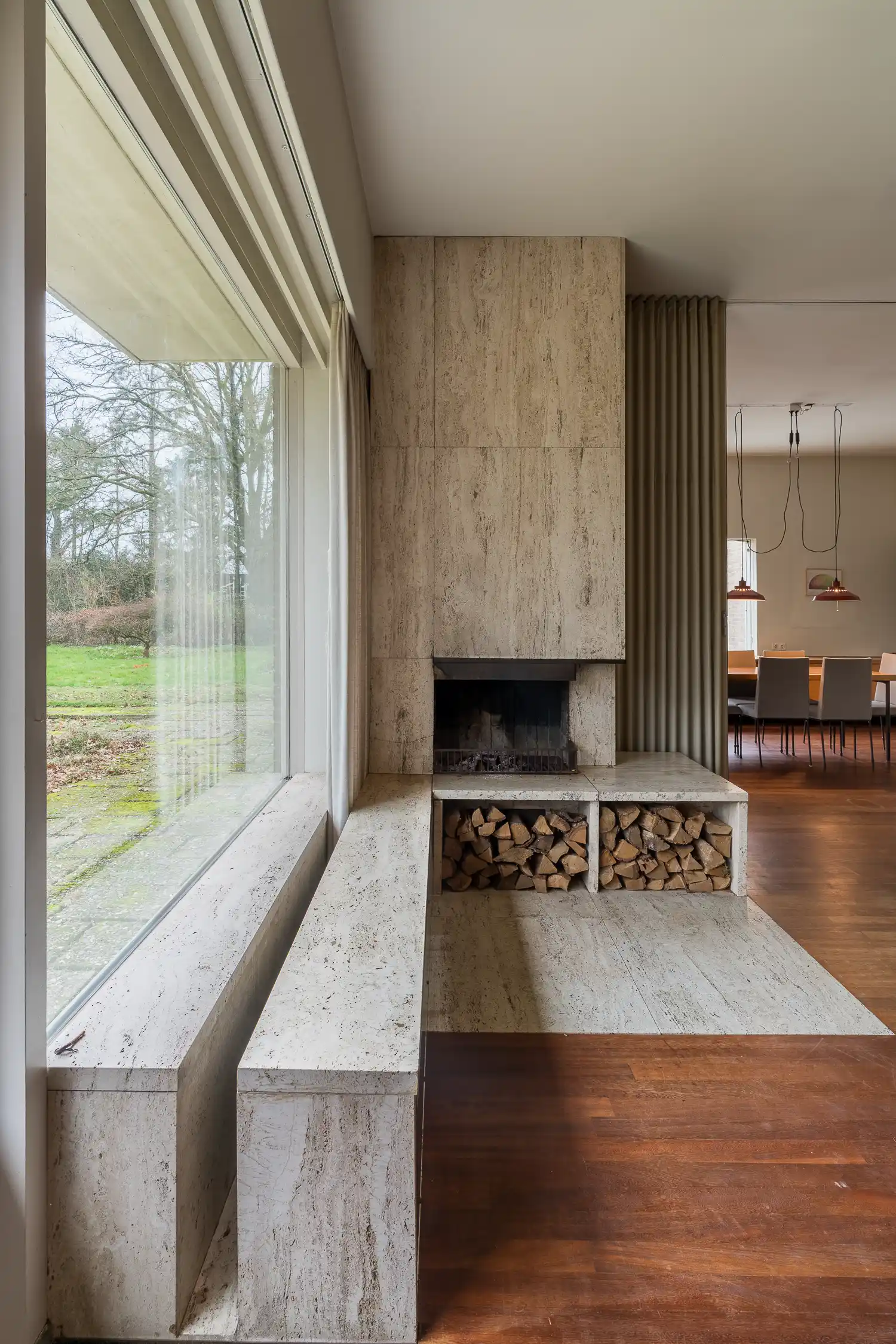 Wat ik bijzonder vind is dat er overal over is nagedacht, de zorg die door de architect aan het ontwerp is besteed, de zorgvuldigheid voor de kleinste onderdelen. En de materialen zijn mooi: travertijn en veel hout; warme materialen. Het is nooit te veel, altijd bescheiden. Het is bijzonder om mee te maken wat dit met je doet.’