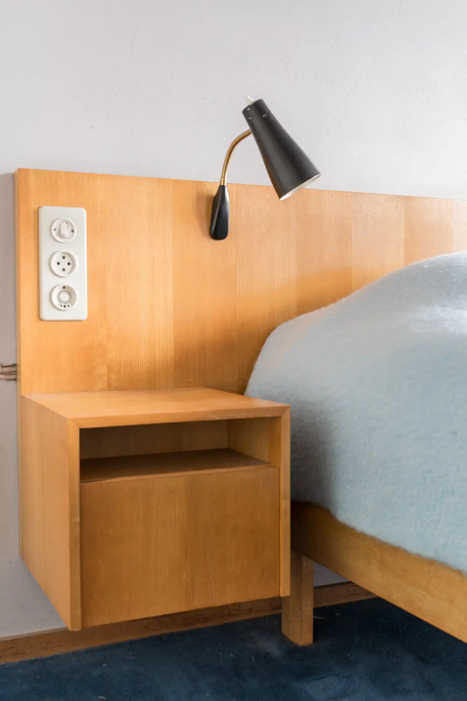 De vijf slaap- en drie badkamers zijn verdeeld over de begane grond en de eerste verdieping in het oostelijk bouwvolume van het huis. Dit ‘nachtgedeelte’ van het huis begint feitelijk bij de opstap, een laag bordes, aan het einde van de gang waarop vanaf het begin een tapijt heeft gelegen, te oordelen naar de foto’s van Jan Versnel uit die tijd. Daarmee werd onderscheid gemaakt tussen het levendige woongedeelte en rustige slaap- en werkgedeelte van het huis.