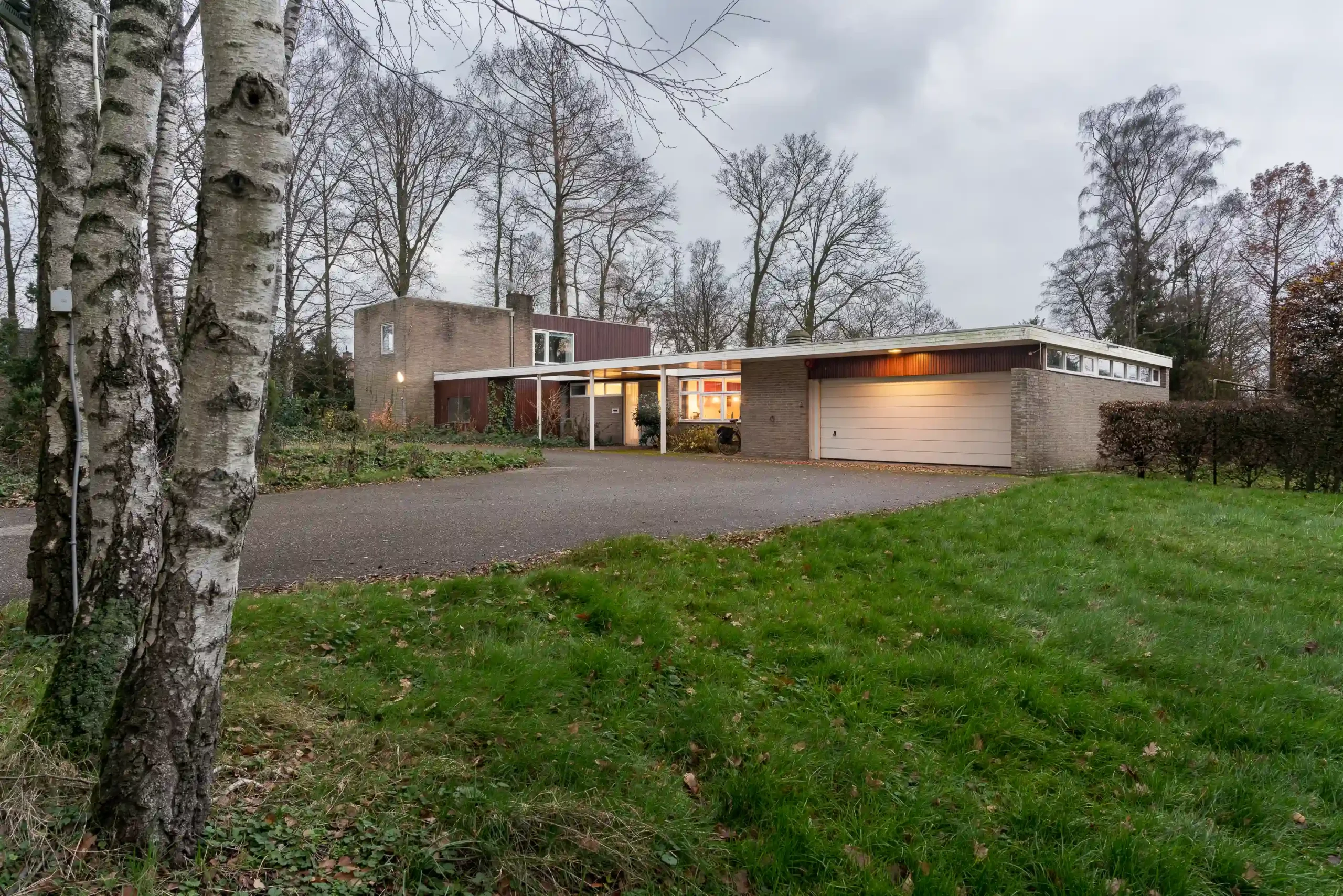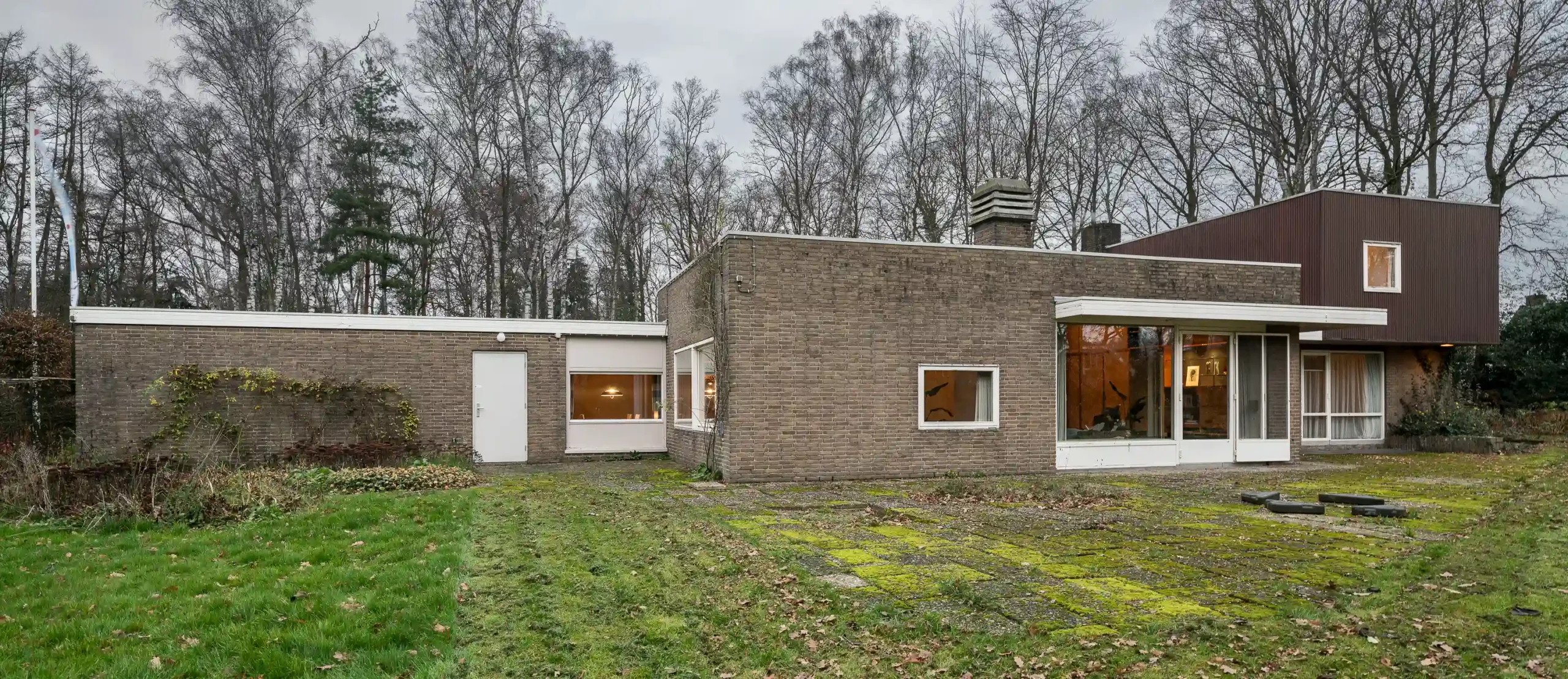 Aan de zuidkant van Enschede staat aan de Vlierstraat 820, een ruime, vrijstaande jaren vijftig bungalow van overwegend één bouwlaag, verscholen op een bosrijk perceel op de hoek met de Buurserstraat. Een slingerende oprijlaan leidt naar een voorplein rond een bomengroep met daarachter de langgerekte voorgevel, gelegen op het noorden. In het lage deel bevindt zich de centraal geplaatste voordeur onder een markante luifel, die zorgt voor de beschutte begeleiding van buiten naar binnen. Het dakoverstek in het verlengde van de luifel betrekt de inpandige de garage bij het ontwerp.